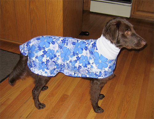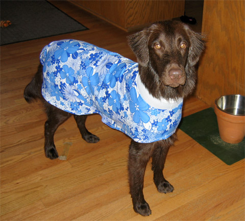 Patsy gets a bath and a "flat" coat (dress borrowed from Meg, the Flatcoat without the "flat" coat)! |