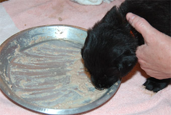 Currently the puppies nurse and then we offer a mixture of goat milk/egg