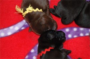 Miss Pink was demonstrating a typical flat coat trait while nursing tonight, her tail was wagging so fast you could hardly see it!