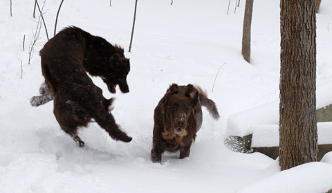 2 dogs, moving as 1 |