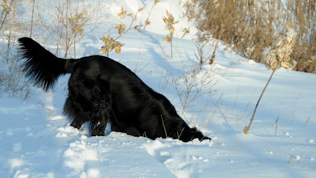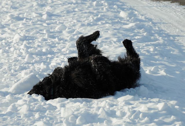 Saturday, December 12, 2009 Meg took the day off from decorating the house to do one of her favorite wintertime activities, rolling on her back in the new snow.