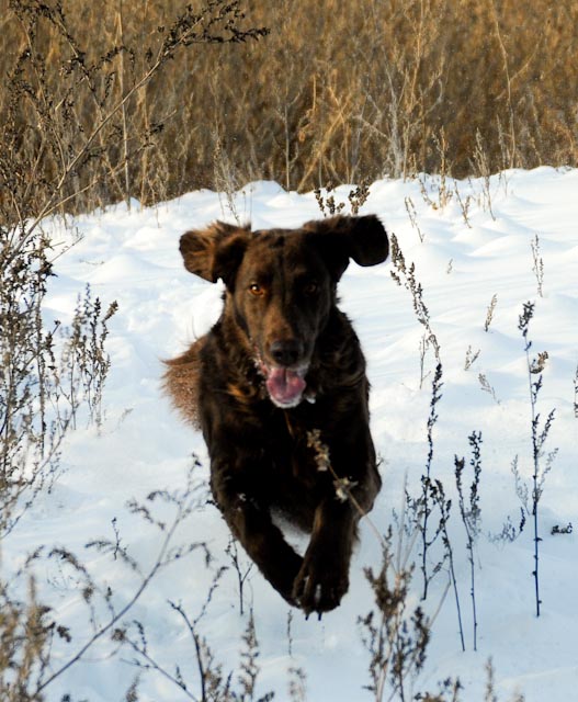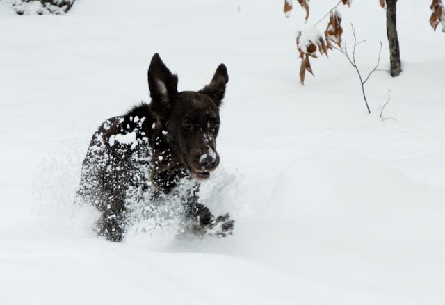 Monday, December 14, 2009 Meg thinks running and playing in the fresh snow is fun.