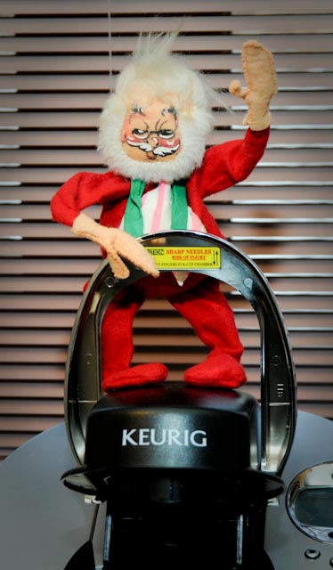 The elfies have arrived!!! We awoke this morning to a house full of elfies. It was great to see that they have returned, and we walked throughout the house to see where they all were stationed. They are up to their mischievous ways, as a matter of fact, perhaps a bit more mischievous than usual for the first night. One was perched on top of the Keurig coffee maker, I hope he moves to another place soon, I like a cup of coffee before I head off to work. The llama elfie that Kona met up at the north pole last year is here this year. He had created quite an interesting pattern in the Zen box. We remember Kona told us that year that llama elfies do not like to be called llamies! The biggest problem is the elfie that is sitting on our flexi leash. We had to get a flexi out of the car to use today. If this year is like past years, the elfies will move around each evening until they settle in a place that gives them good visibility to everything that goes on in the house. Remember, their job is to report to Santa who should be on the nice list and who should be on the naughty list. Do you think the dogs see the elfies moving around overnight???