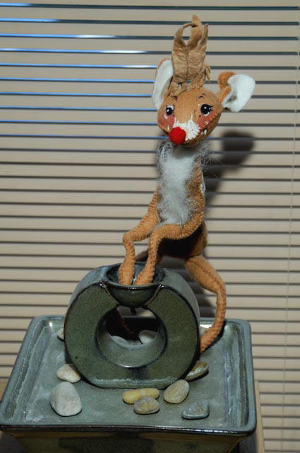 OK, for almost a week now we have been suspecting the elfies and the dogs have been “frolicking” around the house overnight. We have not seen or heard anything definitive, it’s just the way the dogs look at the elfies each morning. Last night, in the middle of the night, I thought I heard something. I got up to check. There was Snicker making believe she was sleeping with the moose! I watched them both for a couple of minutes, other than breathing, they did not move. I gave up and went back to bed. The next morning, the moose was back on the coffee table where it was the day before. Most of the elfies are in different places each morning (they are moving around way more this year than any previous year), and as the dogs see them, their gaze lingers a bit, it is almost as if they are winking or nodding at the elfies, acknowledging something!