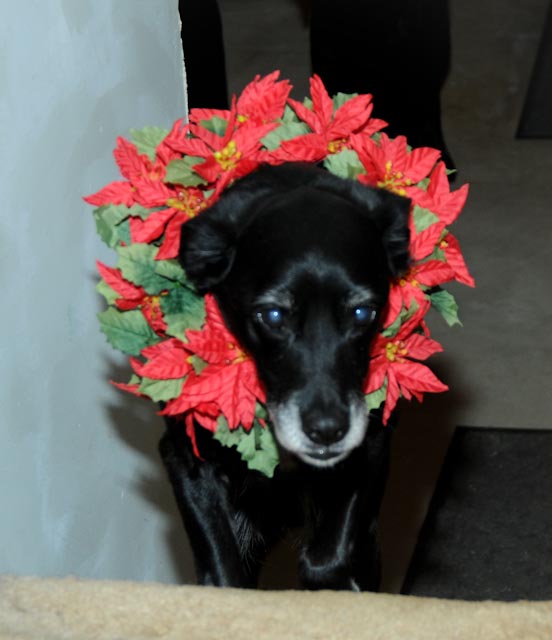 OK, now we know the Conrad elfies are expecting our home to be decorated for the holidays with the learning of our dogs’ adventures last year at the North Pole . Yikes, where do we start? We closely watched our dogs’ behavior to see if we could fathom a clue on where to start. Again, they were acting a bit weird, standing at their food bowls long after they had eaten all their food. What were they trying to tell us? It was getting late, we had to guess. We had already unpacked our Christmas coffee mugs (remember, our new candy cane elfie was hanging onto the edge of my favorite mug). But, we had not unpacked any of our Christmas china. We guessed the dogs were telling us that it was time to get out our dishes! Oh what chaos! Check out some of these pictures, we pack up our placemats and napkins with the dishes, Meg thought a placemat would be a great bandana. Look at Snicker trying to help unpack some of our glasses, I hope I don’t get this glass to drink from. And do you think Onyx really needs a dog blanket, it's a rug, not a blanket!. And look at Kona, he got into the middle of everything! We all give up (and all the dishes are finally unpacked). Overnight tomorrow night the elfies come back, we hope they will understand that we’ve only just begun to decorate our home for Christmas. By the way, don’t worry, no dogs (or people) were harmed in the production of this day in the Flashback Advent calendar.