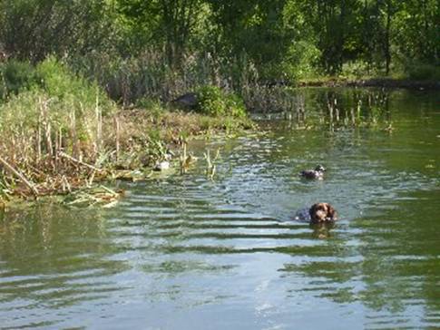 Rio swims for bumper, ignores decoy, Good Boy!! |
